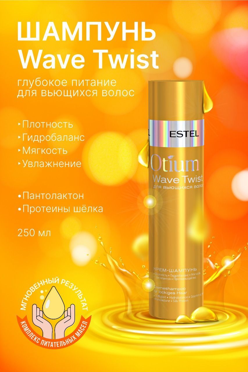 Шампунь из серии OTIUM WAVE TWIST отличается лёгкой кремовой текстурой, хорошо пенится, деликатно удаляет все загрязнения, ороговевшие клетки, сальный блеск. Средство содержит уникальный комплекс активных компонентов, в основе которого протеины шёлка и пантолактон.