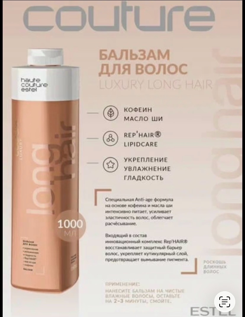 Средство насыщает шевелюру влагой и питательными веществами. После мытья на волосах образовывается плёнка, препятствующая испарению молекул воды.шампунь эстель